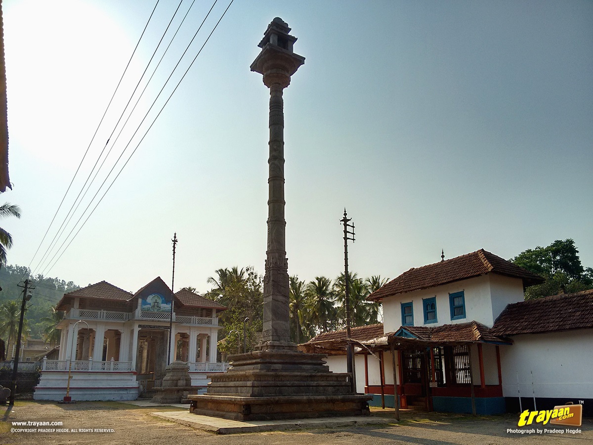 Manasthamba – located in front of Neminatha Basadi, Hiriyangadi, Karkala, 53 km north-east of Mangalore, Karnataka. Erected in early 15th Century CE by king Veera Pandya deva, the Sthamba is surrounded by 5 more Basadis including Gururaya Basadi of Chandranatha Swamy. It is about 3.5KM from the hotel Mayura International Karkala.